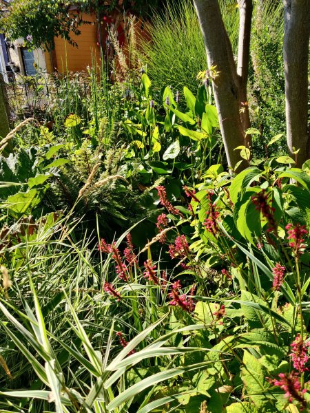 De nombreux massifs de plantes structurant le jardin permettent aux insectes et abeilles sauvages de trouver de quoi manger et s?abriter tout au long de l'année.